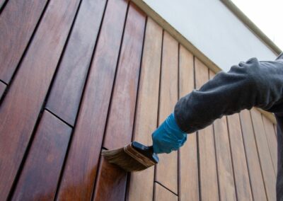 Nous appliquons un traitement complet incluant ponçage, traitement du bois, sous-couche protectrice et finitions de qualité, afin d’assurer une protection optimale contre l’humidité, les UV et le vieillissement naturel du matériau.